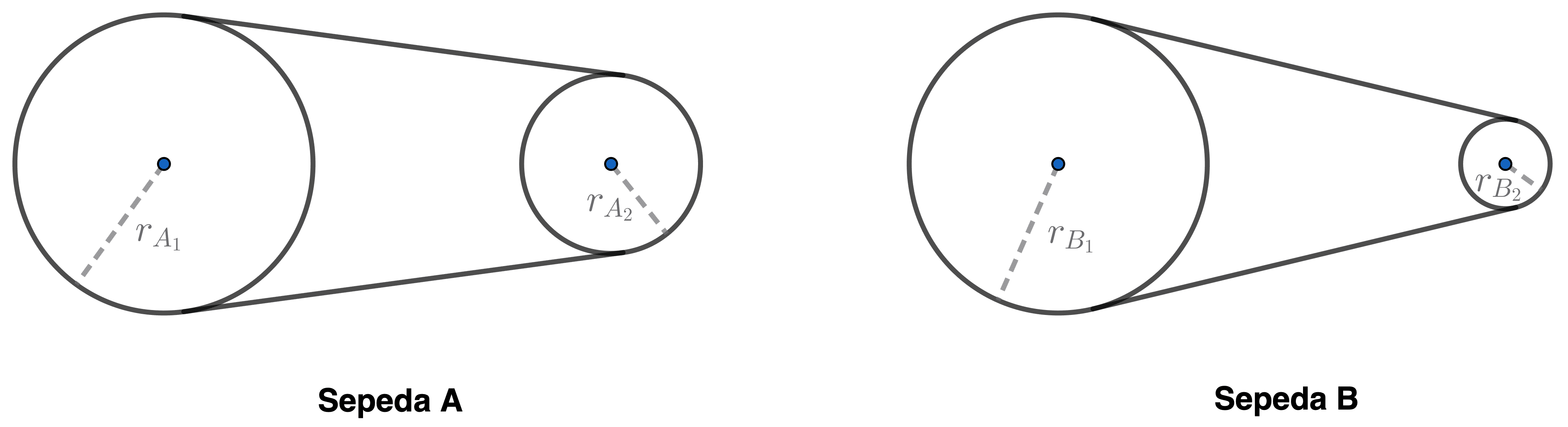 Jika roda $A$ sudah berputar sebanyak $n$ kali, maka roda $B$ berputar sebanyak ... kali.