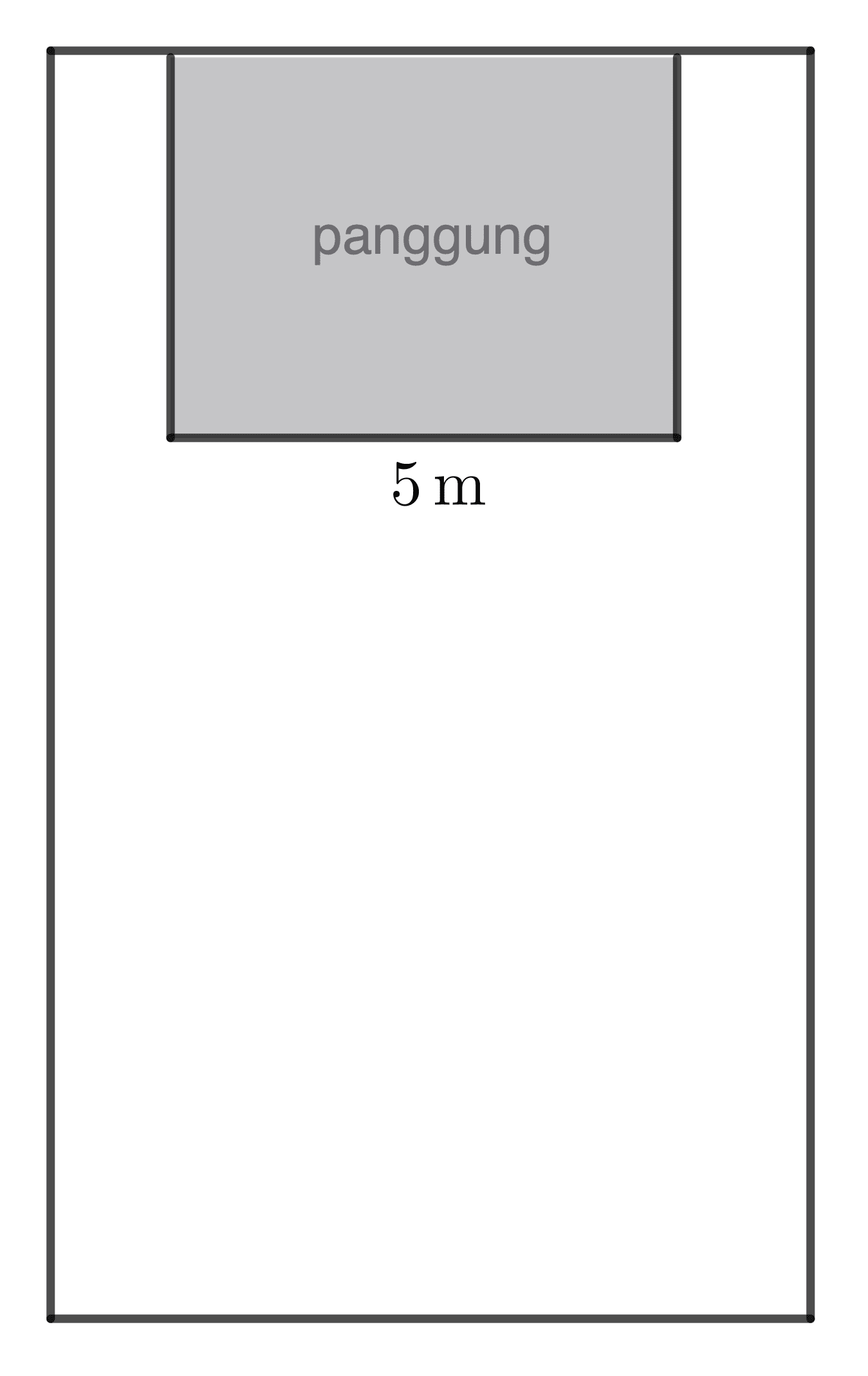 Lapangan berbentuk persegi panjang dengal luas $\pu{126 m^2}$ akan dipasangi sebuah tenda yang menutup seluruh lapangan dengan ukuran tinggi atap tenda $\pu{6 m}$. Berikut merupakan tampak samping dari tenda yang akan dipasang.