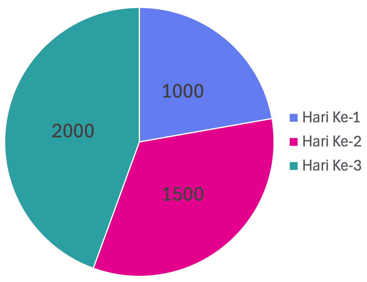 Setiap hari, sentra pengrajin tahu dan tempe membutuhkan bahan baku kedelai. Data kebutuhan bahan baku kedelai dalam satuan kilogram selama 3 hari digambarkan dalam diagram berikut.