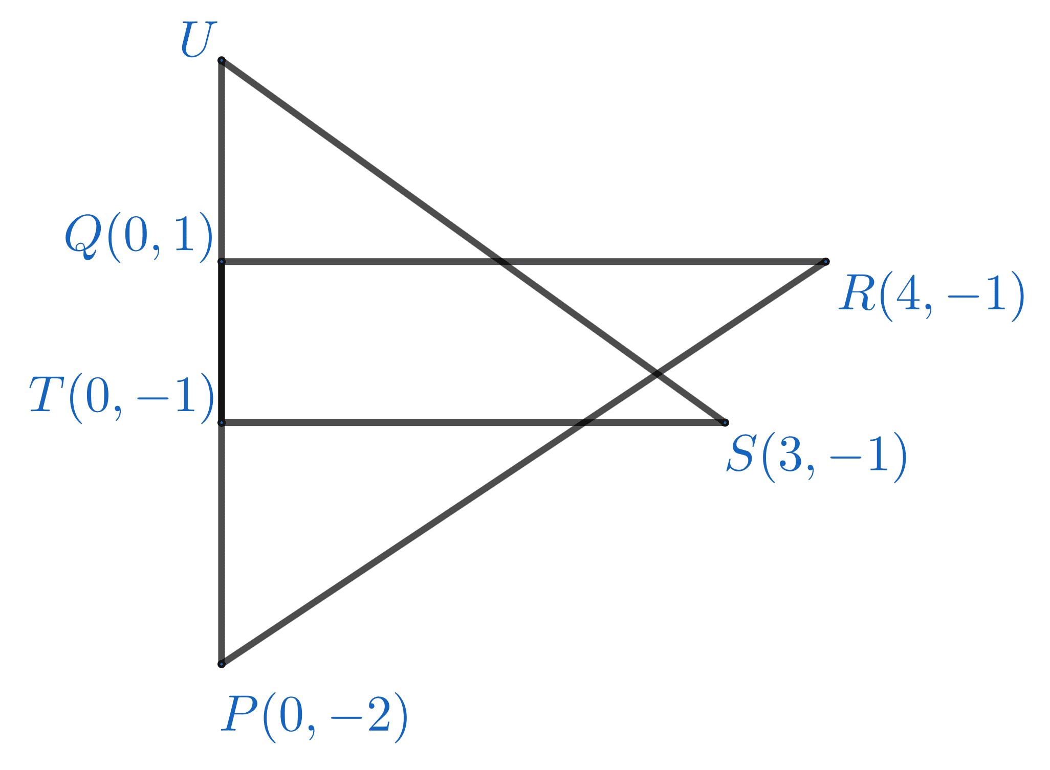 Jika $(a, b)$ merupakan koordinat titik $U$, nilai dari $a + b$ adalah ...