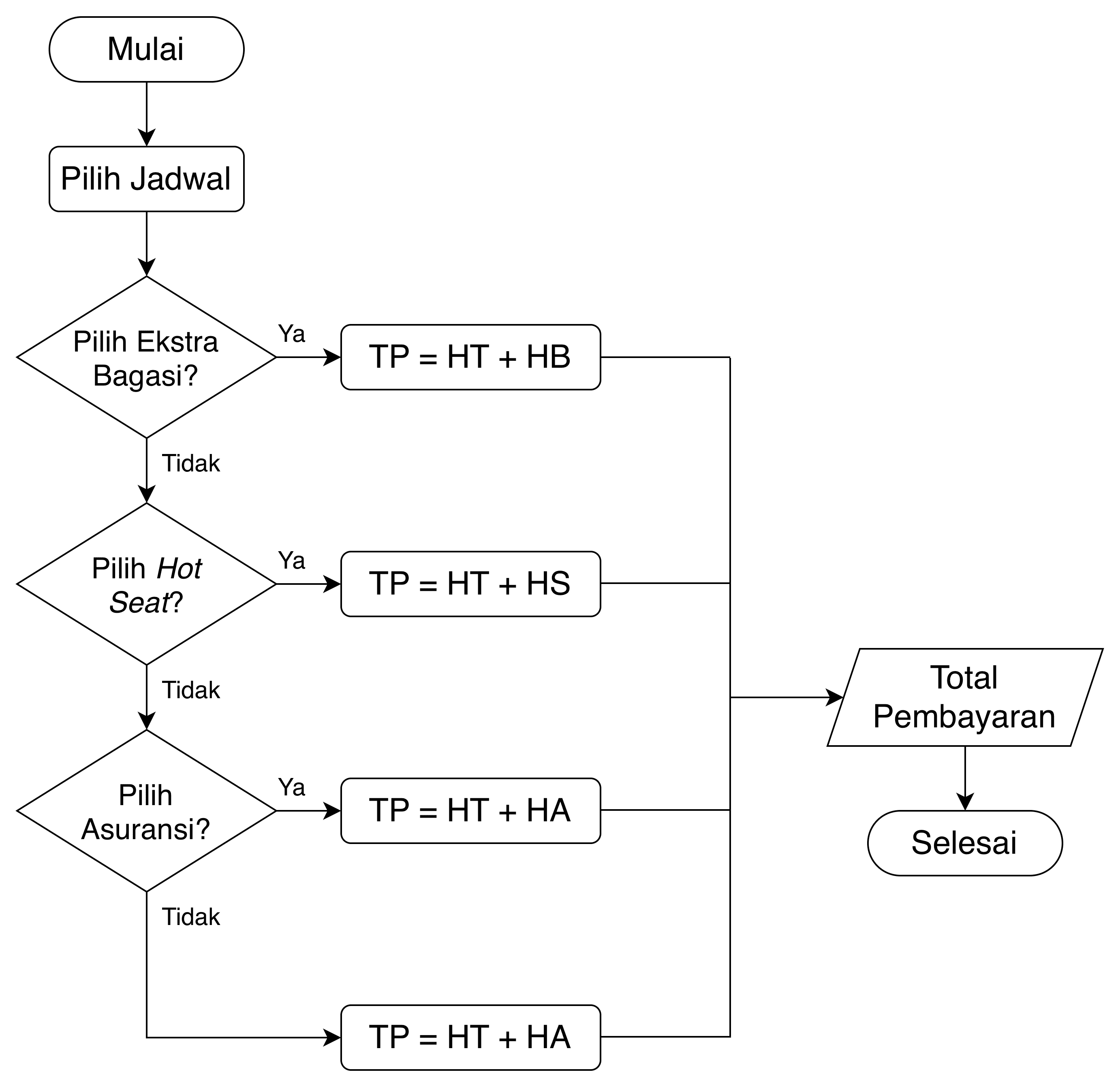 Maskapai penerbangan A memiliki 3 jadwal penerbangan ke Bandara X. Pada tabel dan diagram alir berikut terdapat informasi tiket dan biaya ekstra.